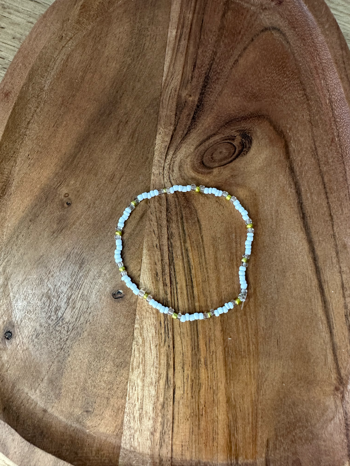 Ručně vyrobený náramek z drobných korálků. Z pružné elastické nitě. Laděný do bílých barev barev. Perfektní volba pro ty, kdo mají rádi jednoduchou, ale krásnou bižuterii.