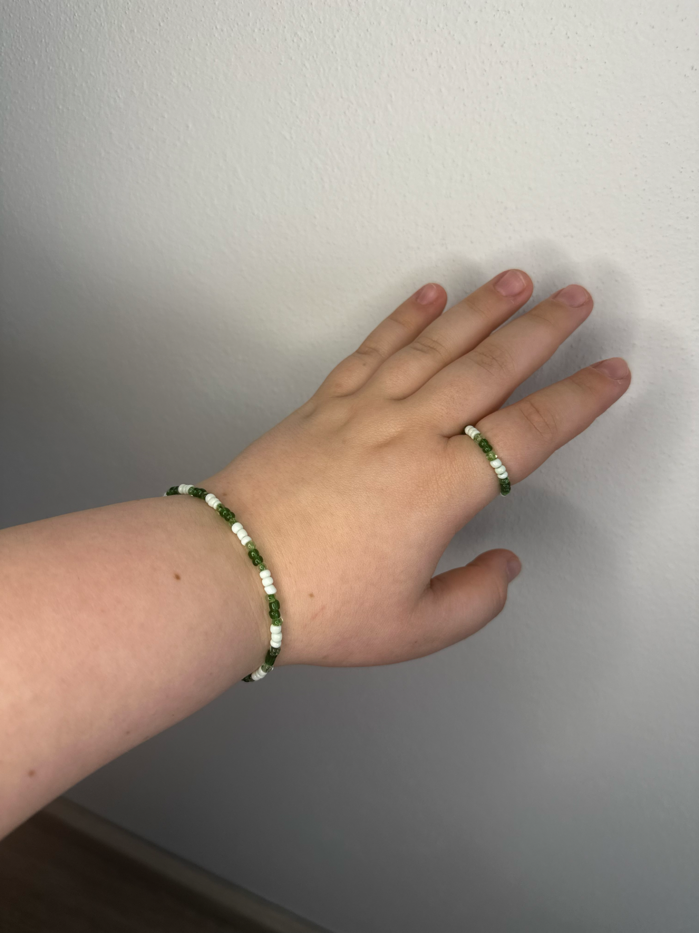 Krásný sladěný set náramku a prstýnku z korálků, který dodá vašemu outfitu jemnost a kouzlo.