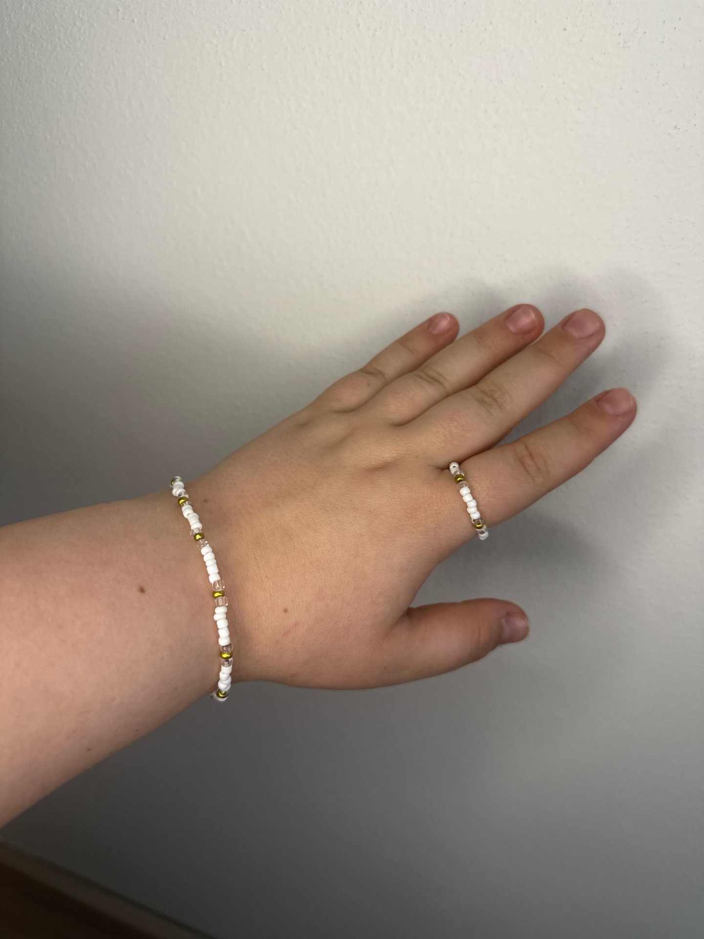 Krásný sladěný set náramku a prstýnku z korálků, který dodá vašemu outfitu jemnost a kouzlo.