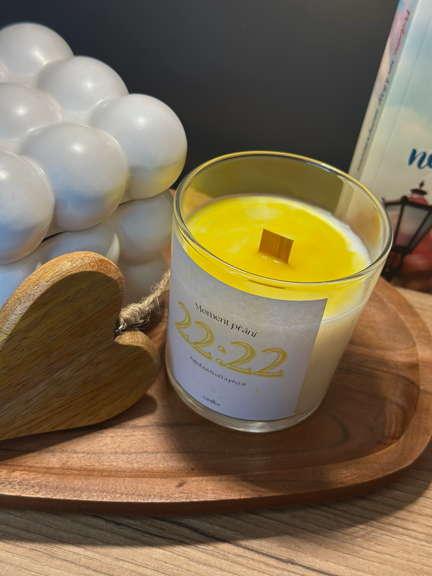 Svíčka 22:22 je okamžik, kdy si můžeš potichu něco přát. Tato svíčka je symbolem víry, že vesmír slyší tvé myšlenky. Zapal ji, soustřeď se na své přání a dovol si věřit, že se vše skládá ve tvůj prospěch. Svíčka inspirovaná magickým časem 22:22 ti připomene, že tvé myšlenky mají sílu. Vytvoř si svůj malý rituál – nadechni se, vyslov přání a nech plamen nést tvůj záměr dál.